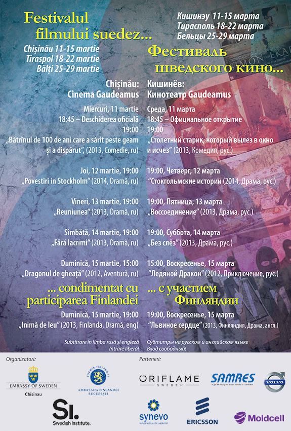 The Embassy of Sweden in Chisinau has the pleasure to invite you to this year´s Swedish Film Festival that will take place in Chisinau, Tiraspol and Balti!
