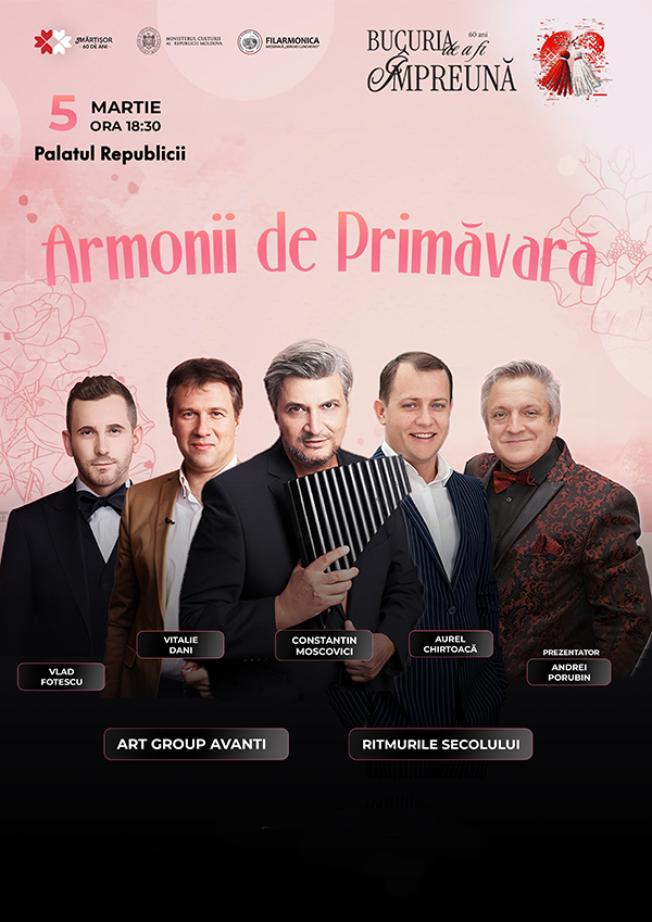 Concertul „Armonii de Primăvară” vă invită la o seară deosebită, plină de emoție, muzică aleasă și ritmuri care vestesc renașterea naturii.