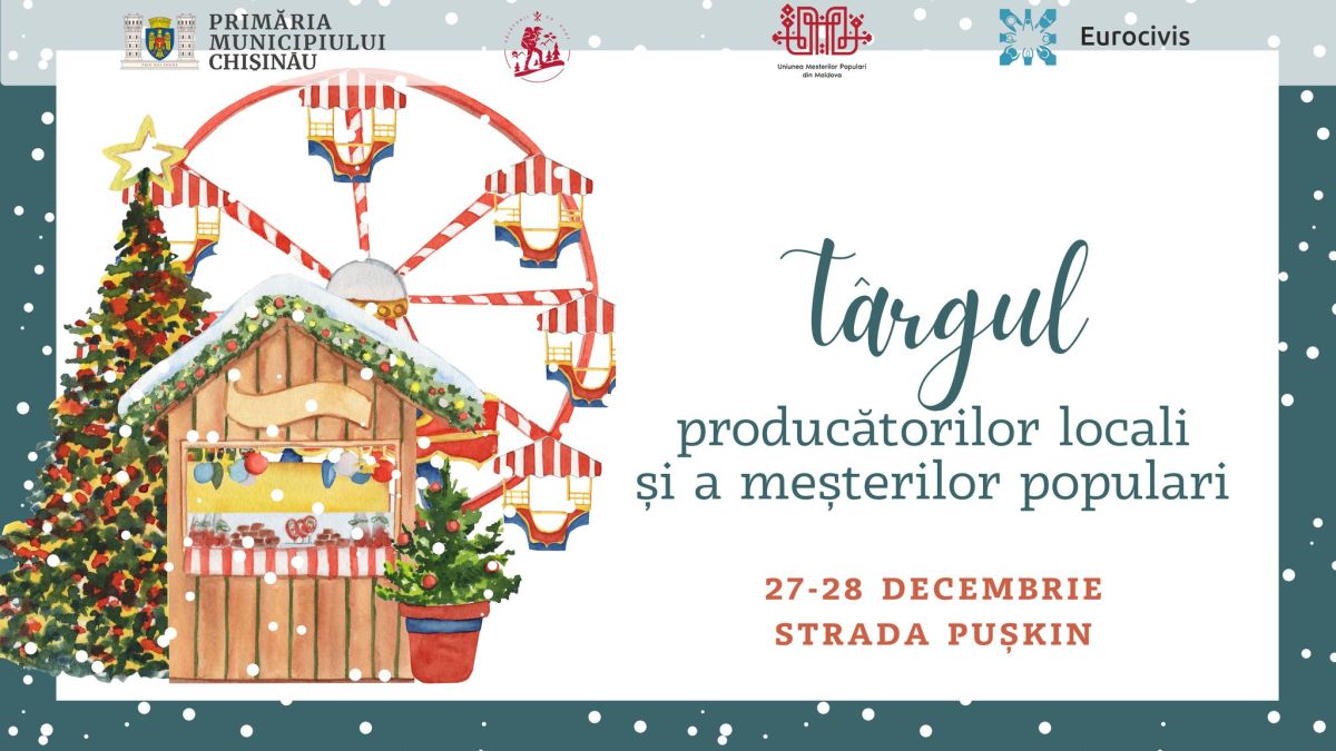 Te invităm la Târgul producătorilor locali și a meșterilor populari, pe Strada Pușkin, 27–28 decembrie.