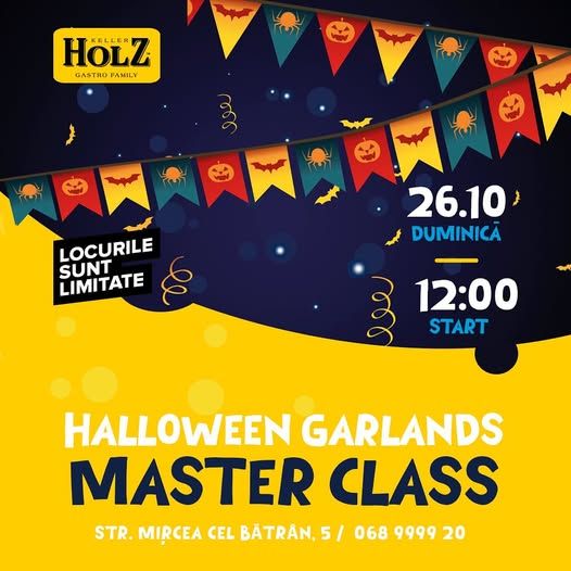 La atelier, copiii vor crea ghirlande colorate în stil de Halloween, adăugând o notă de fantezie, culoare și magie. Vom crea, ne vom juca cu culorile și vom aduce bucuria sărbătorii prin propriile noastre mâini! Fără teamă — doar bucurie, creativitate și zâmbete!