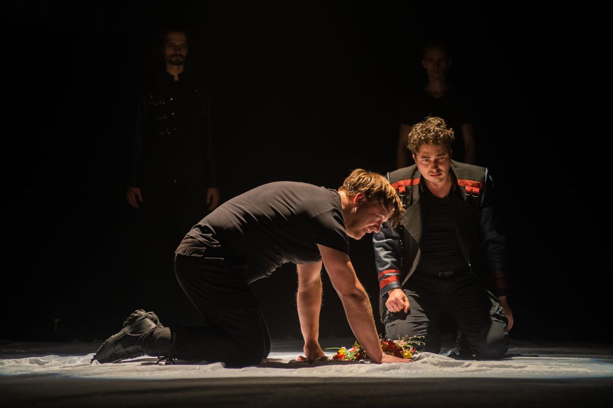 Din primele minute ale spectacolului, Hamlet, prințul Danemarcei te poartă prin gesturi bine țintite direct în inima poveștii. Acolo, în fața ta, e toată istoria care va duce la povestea bine-cunoscută a lui Hamlet; aceasta se scrie sub ochii tăi, ca un alt spectacol de teatru-în-teatru, corespondentul a ceea ce va fi „Cursa de șoareci”.