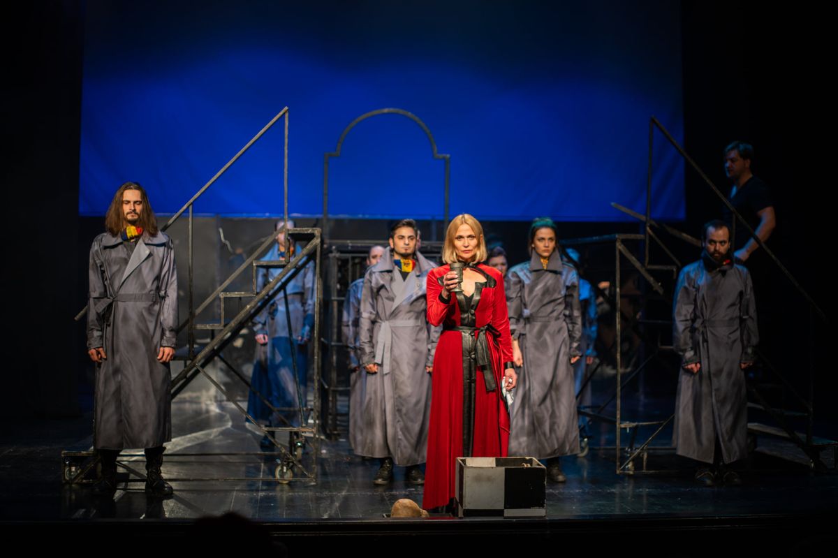 Regizorul mută povestea lui Shakespeare într-un „atemporal” an 2018, în Elsinore, în Danemarca. Și în fața publicului se derulează imagini de la magnifica înmormântare, și încet, încet, relațiile încep să se contureze; această reîntoarcere și acest amestec al timpurilor este pariul lui Sandu Grecu. În scene aparent disparate, povestea se repetă iar și iar, la infinit, din vremea Danemarcei lui Shakespeare și până azi, vie, puternică, țintind inima Ființei și, mai ales, situația social-politică din „Danemarca noastră” sfâșiată de aceleași nedreptăți, minciuni și trădări nesfârșite, care ne lipsesc de orice speranță și ne îngroapă viitorul în mormântul negru al ”neistoriei”.