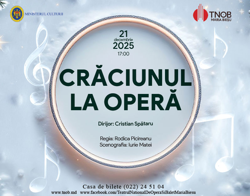 Te invităm la Teatrul Național de Operă și Balet „Maria Bieșu” să trăim împreună atmosfera caldă a sărbătorilor de iarnă, într-un concert extraordinar dedicat magiei Crăciunului.