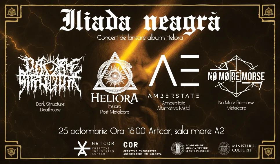 Хедлайнеры вечера – DARK STRUCTURE – возвращаются с мощным шоу, а Heliora представит долгожданный альбом Iliada Neagră. Атмосферу дополнят Amberstate и Nomoremorse, обещая вечер, где будут царить энергия, тяжёлые риффы и жёсткие брейкдауны.