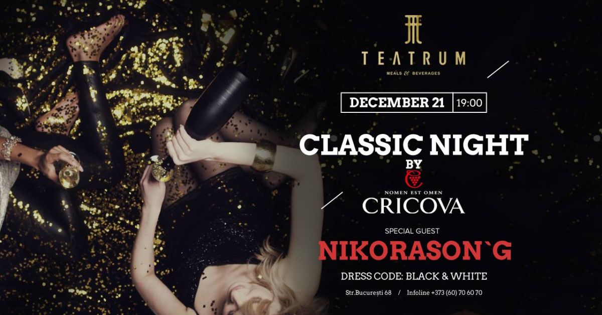 Комбинат по производству вин “Cricova” приглашает тебя на Classic Night by Cricova. Проведи зимний вечер в элегантной и уютной атмосфере вместе с Nikorason'g.